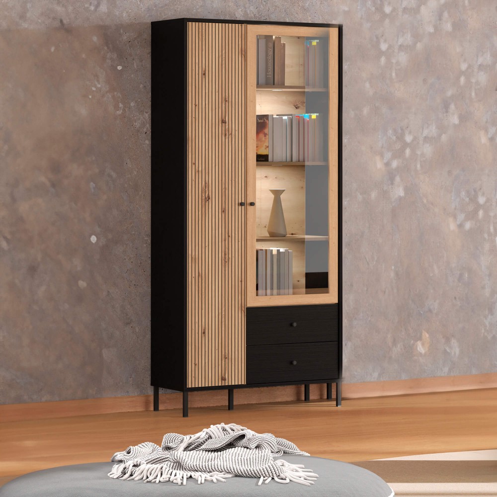 Adquira a vitrine CORREZE com um design moderno com porta de vidro, armazenamento e possibilidade de iluminação.