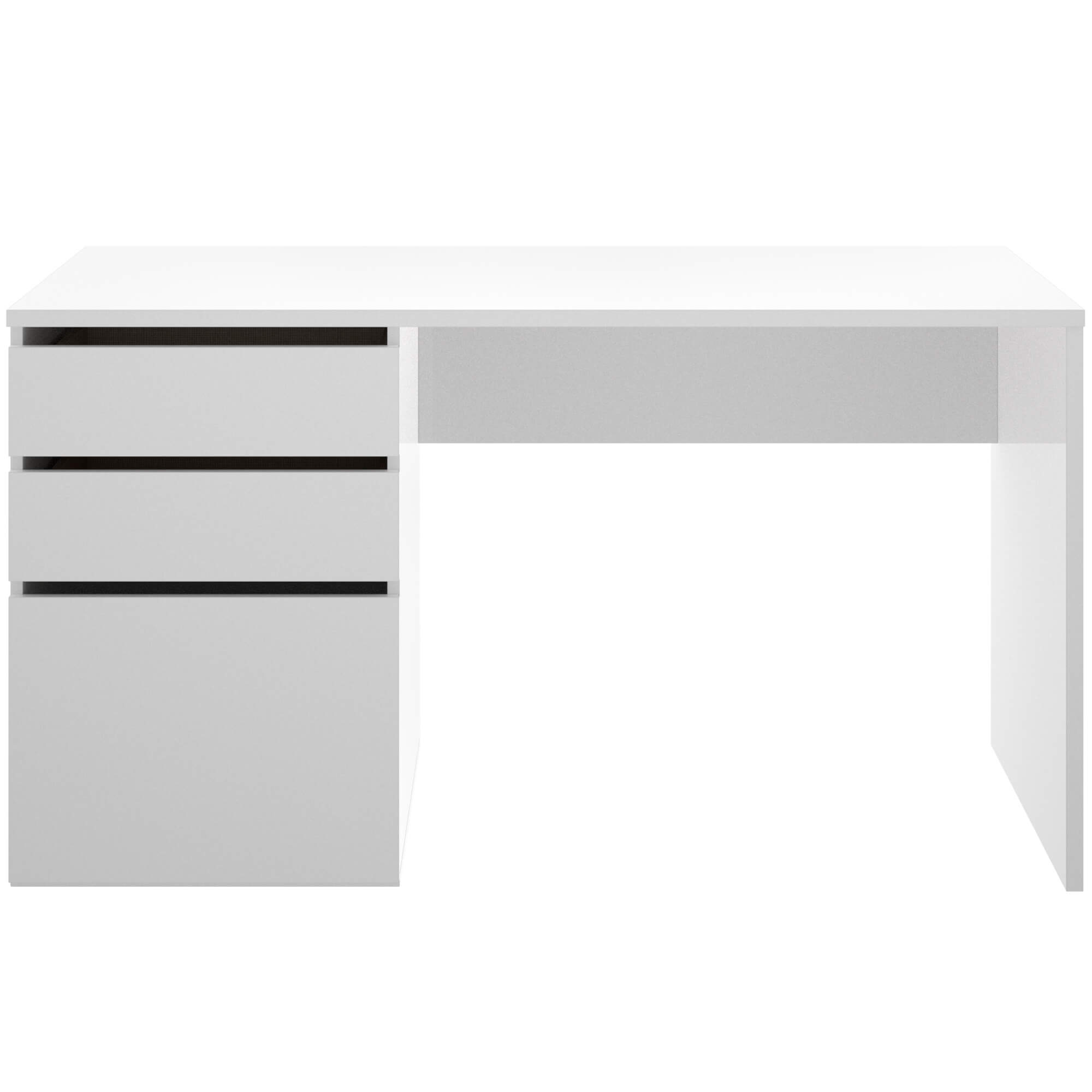 Secretária moderna branca com gavetas e porta para um espaço de trabalho elegante e organizado.Ler mais